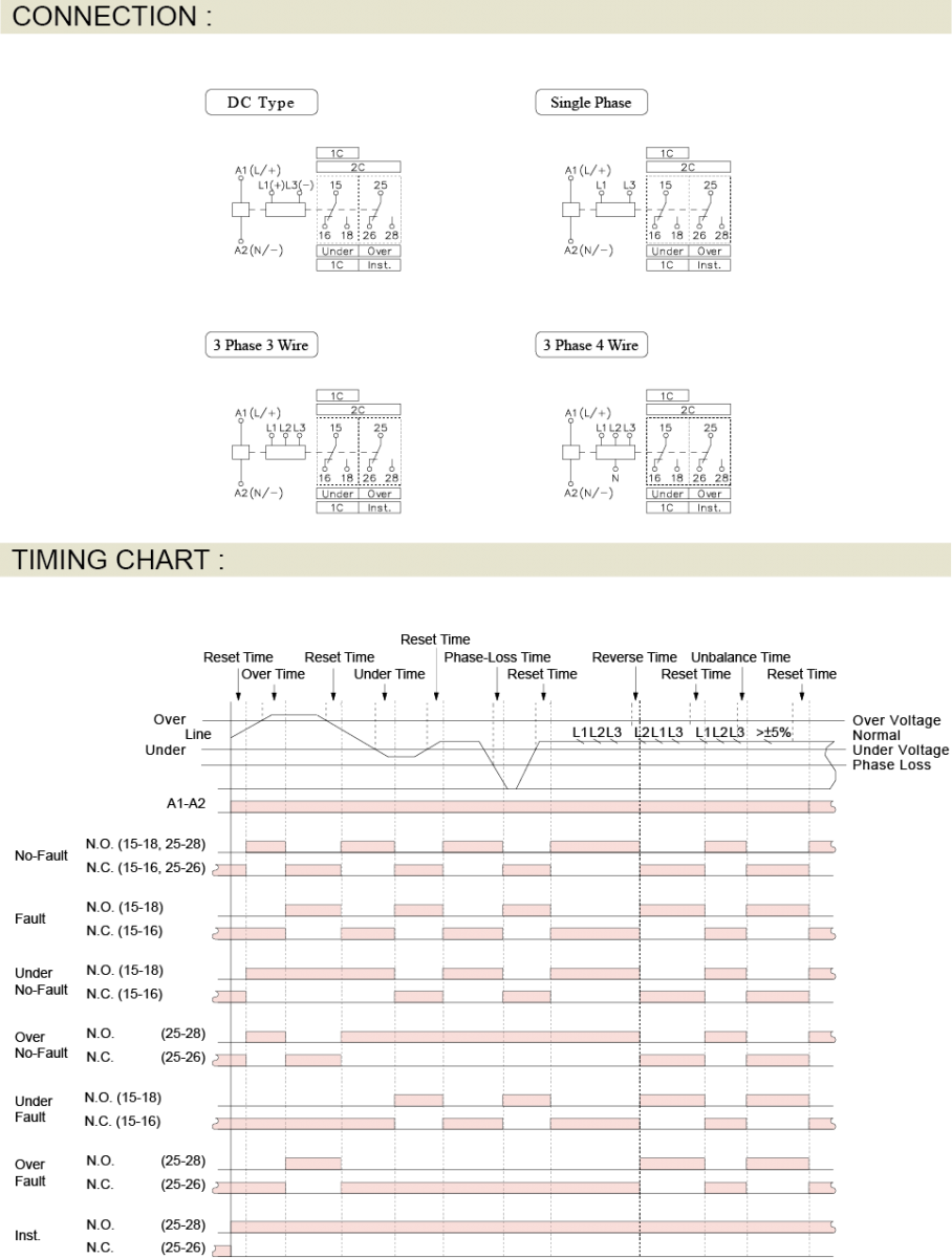 Prev Next Protective Relay Voltage Relay EP4-1 DIGITAL VOLTAGE PROTECTIVE RELAY Add to inquiry Inquiry list Description Wiring and timing diagrams Overall dimensions or other Download Digital voltage indicator and fault detector Over voltage detection with 0.5sec~120sec tripping delay Under voltage detection with 0.1sec~10sec tripping delay Phase-loss detection with 2sec fixed tripping delay Phase sequence detection with 0.5sec fixed tripping delay 3-phase voltage balance(±5%) decetion with3sec fixed tripping delay Phase-loss detection with active motor Manual / Auto Reset selectable - 1sec or 5sec auto reset tripping delay EP4-1 Catalogue EP4-1/EP4-1_DC User Manual