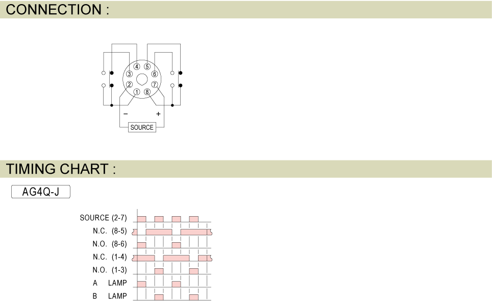 Prev Control Relay Exchange Relay AG4Q-J EXCHANGE RELAY Add to inquiry Inquiry list Description Wiring and timing diagrams Overall dimensions or other Download 2 relays (1a,1b) alternating operating contacts with rising-edge trigger(Power-on) AG4Q-J Catalouge