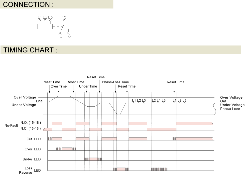 • 3-phase voltage fault monitoring:Phase reversal, Phase loss, Over voltage, Under voltage