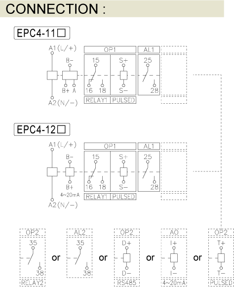 Next Temperature Controller Temperature Controller EPC4-1 PID TEMPERATURE CONTROLLER Add to inquiry Inquiry list Description Wiring and timing diagrams Overall dimensions or other Download Easy-to-use, PID function selectable Output1: Relay or Voltage(for SSR) selectable Can chose one of them : Relay, Alarm2, RS485, 4~20mA and Votage(for SSR) option for output2 Accepts thermocouple, platinum RTD or 4~20mA inputs Heating or cooling control selectable Panel lock protection function Sensor malfunction detection function EPC4-1 Catalogue EPC4-1 User Manual