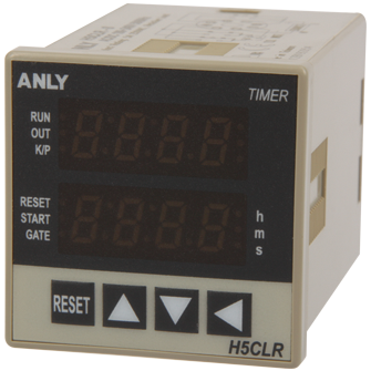 Prev Next Timer Digital Timer H5CLR MULTI-FUNCTION DIGITAL TIMER Add to inquiry Inquiry list Description Wiring and timing diagrams Overall dimensions or other Download Eleven field-selectable output modes accommodate a wide variety of applications 7-segment-display for clear display and effective monitoring All parameters set by scrollthrough menus accessed from the front panel Field-selectable time ranges from 0.001 second to 9999 hours Precision control possible to 0.001 second Four levels of key protection provided Count Up or Count Down mode user selectable Memory function available UL, C-UL recognized and CE certified H5CLR Catalogue H5CLR/ASY-4DR Users Manual