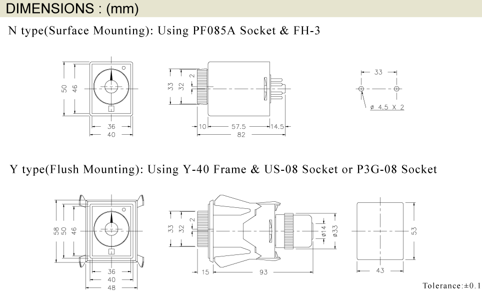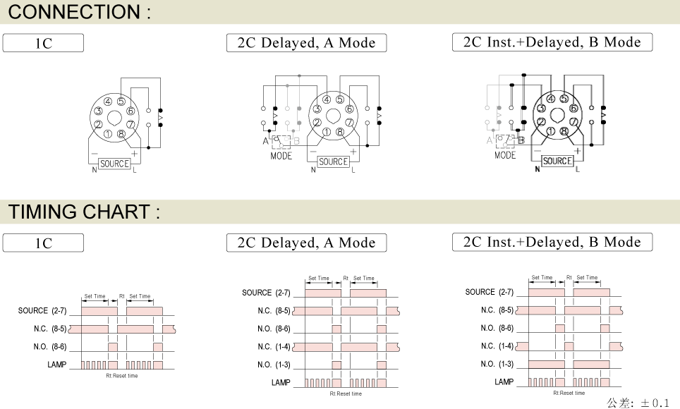Prev Next Timer Analogue Timer AH3 MULTI-RANGE ANALOGUE TIMER Add to inquiry Inquiry list Description Wiring and timing diagrams Overall dimensions or other Download Customized CMOS IC for low power consumption, high operation stability and extreme timing accuracy Flush mount with Type Y-40 adapter and surface mount without adapter 5 (NA, NB, NC, ND, NE) timing series available * Each timing series has 4 time ranges, selectable via DIP switch * A/B Mode selectable with a slide switch. A Mode for 2C Delayed output contacts. B Mode for 2C Inst.+Delayed output contacts. CE certified Note: "*" indicates applicable to AH3 multi-range series only AH3 Catalogue