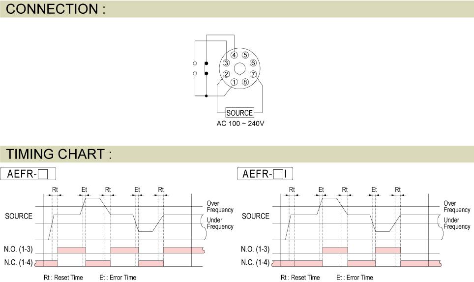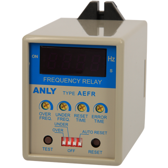 Protective Relay Frequency Relay AEFR DIGITAL FREQUENCY RELAY Add to inquiry Inquiry list Description Wiring and timing diagrams Overall dimensions or other Download Digital frequency display and fault detection Over frequency (50Hz~99Hz) and under frequency (10Hz~60Hz) detection Over and under frequency delay, from 1s to 10s Manual or auto reset, auto reset delay from 1s to 10s Over or under frequency bypass possible Crystal oscillator and digital IC for high precision, frequency resolution under 0.1Hz AEFR Catalouge AEFR Users Manual